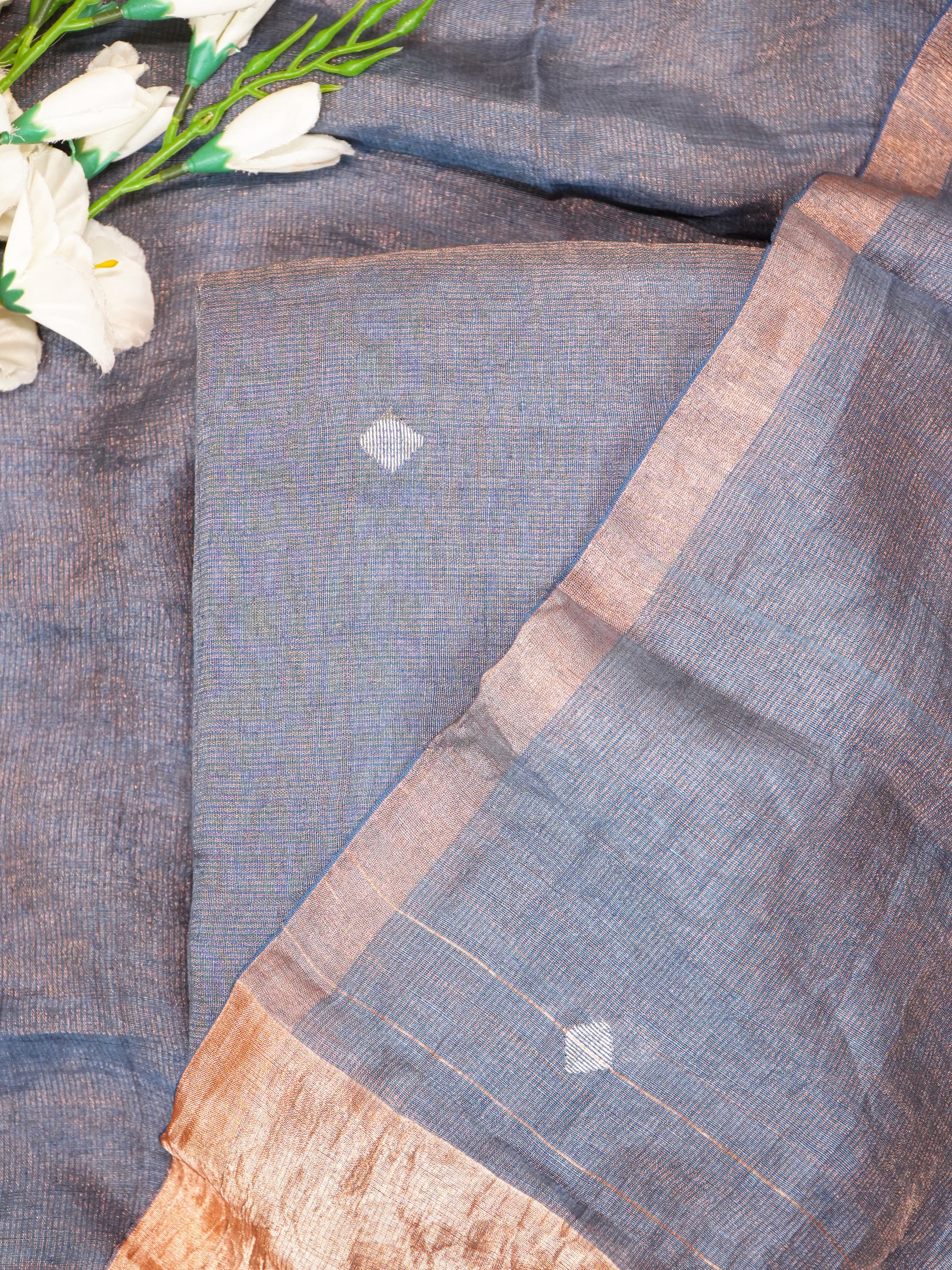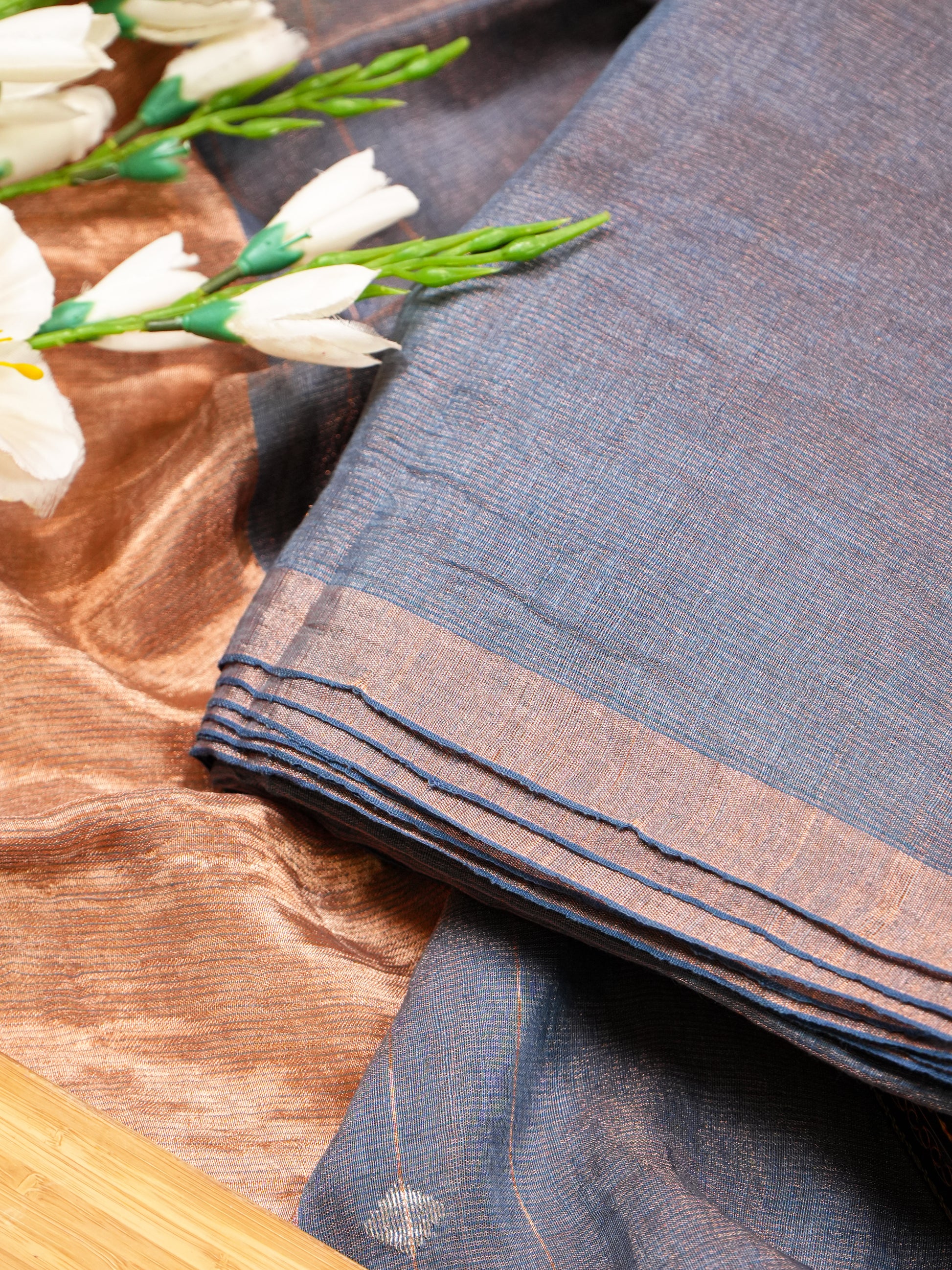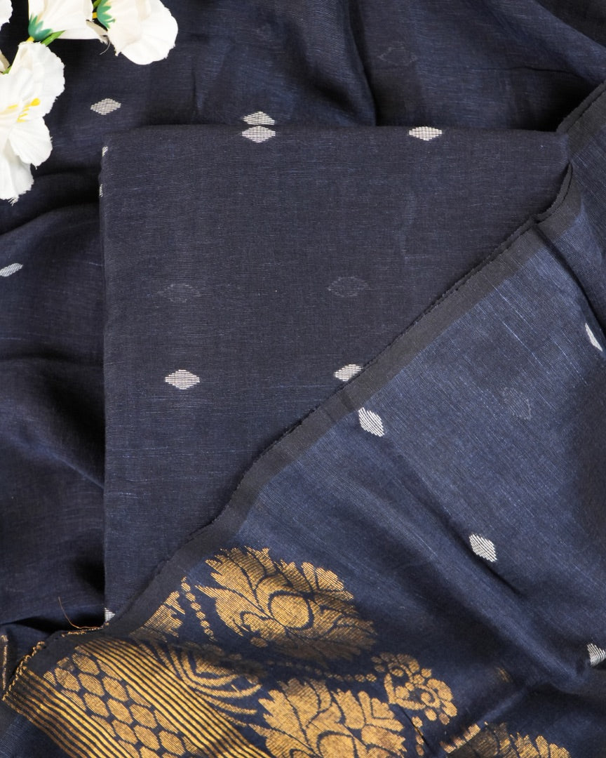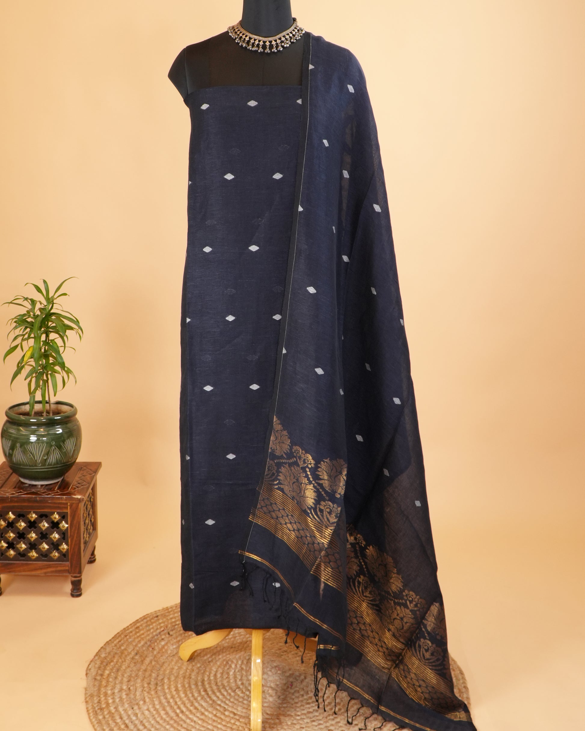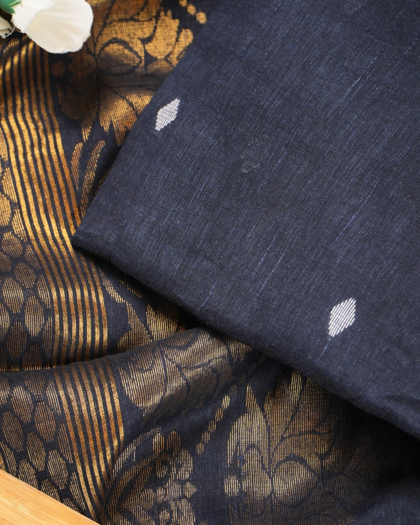 Jamdani Navy Blue Khadi Linen Banarasi Handwoven Suit Set