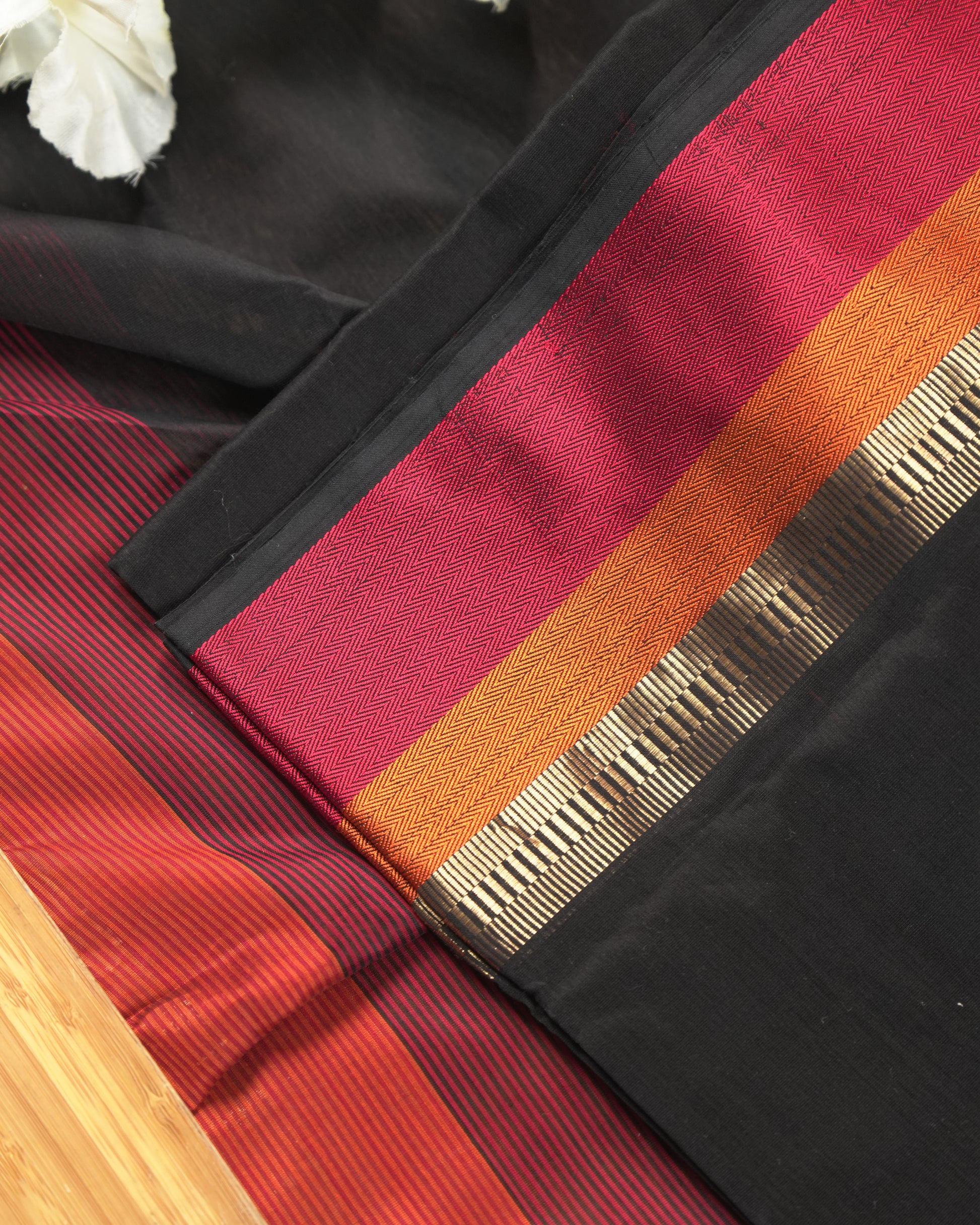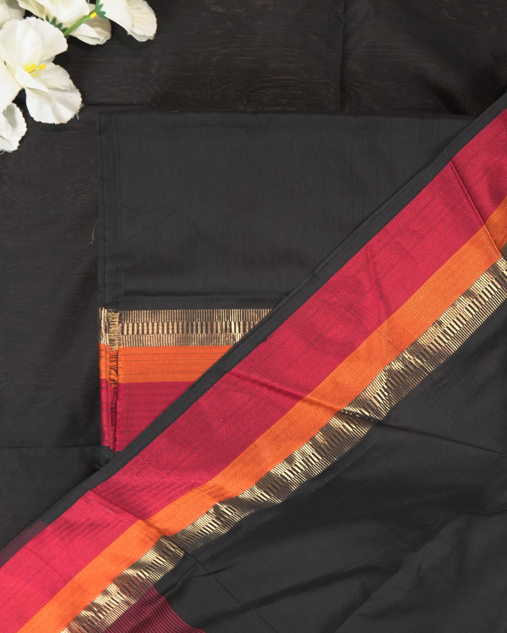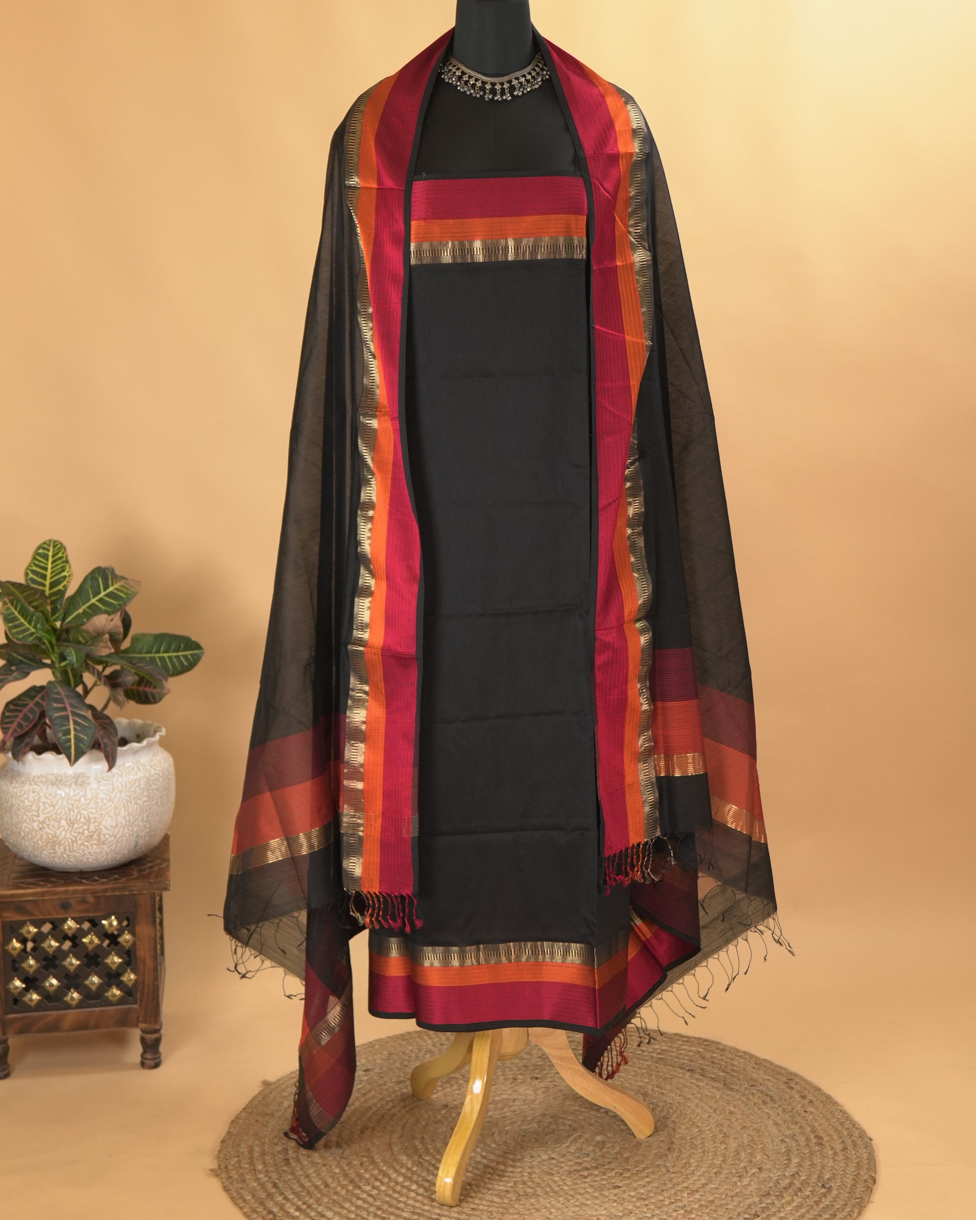 Black Maheshwari Silk Multi-Coloured Border Suit Set