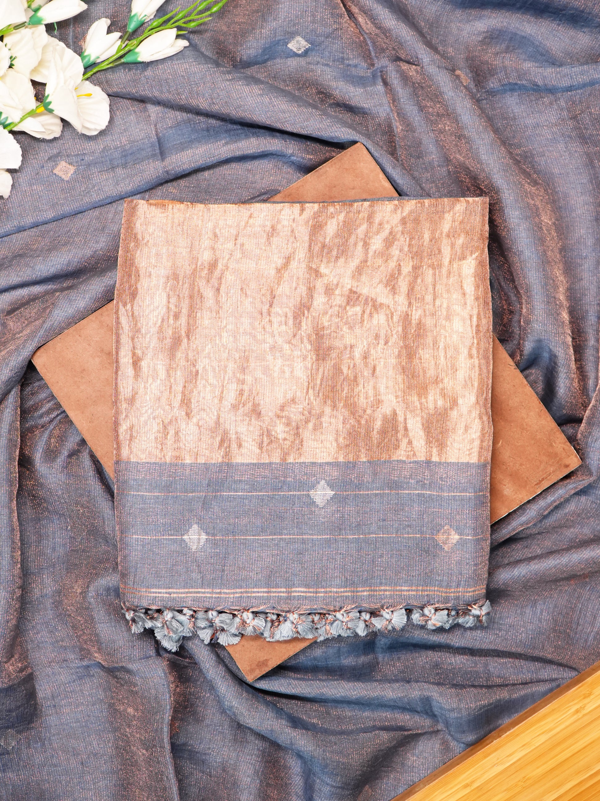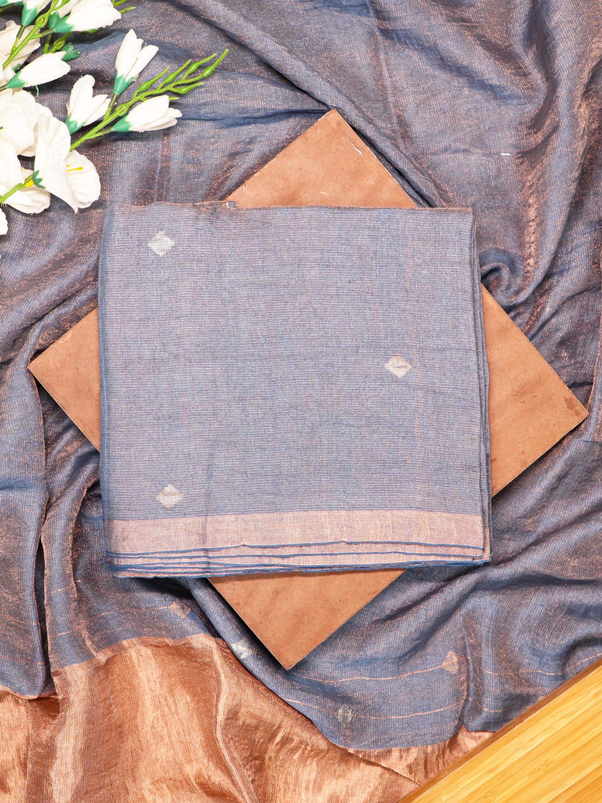 Grey Organic Mulberry Silk & Tissue Linen Jamdani Suit Set