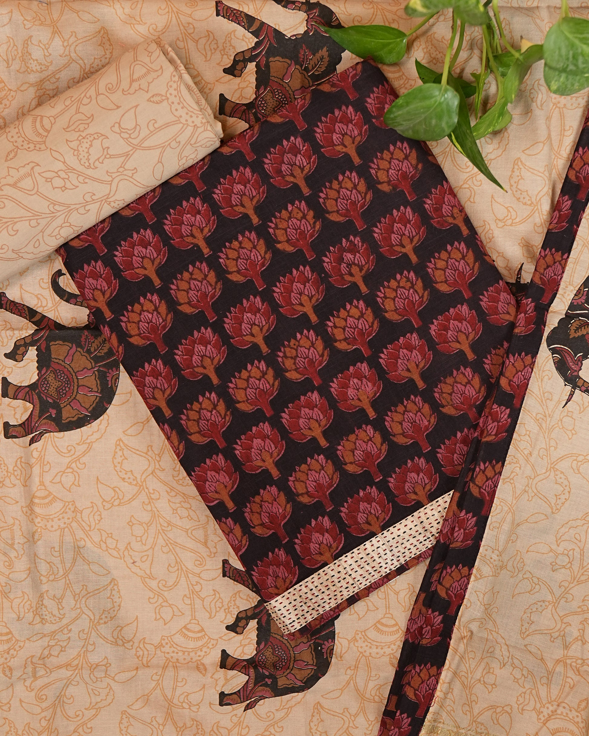 Black Kalamkari Printed Handloom Cotton Suit Set