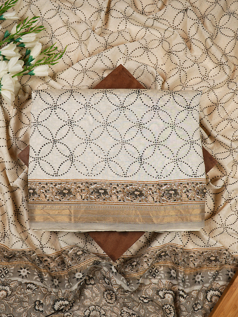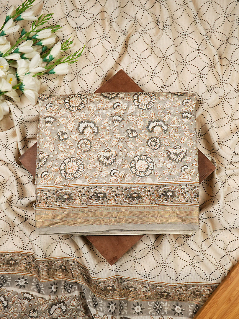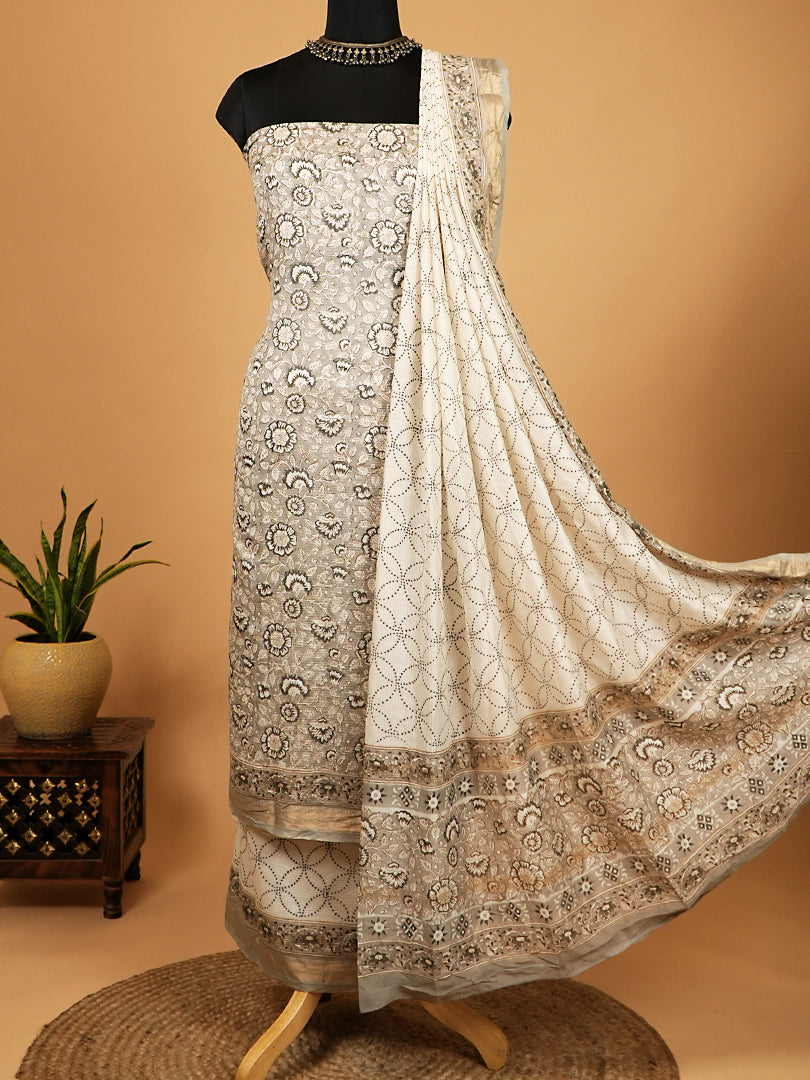Grey Maheshwari Silk Handblock Print Suit
