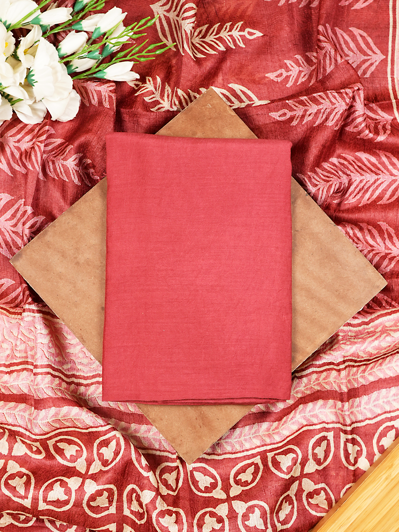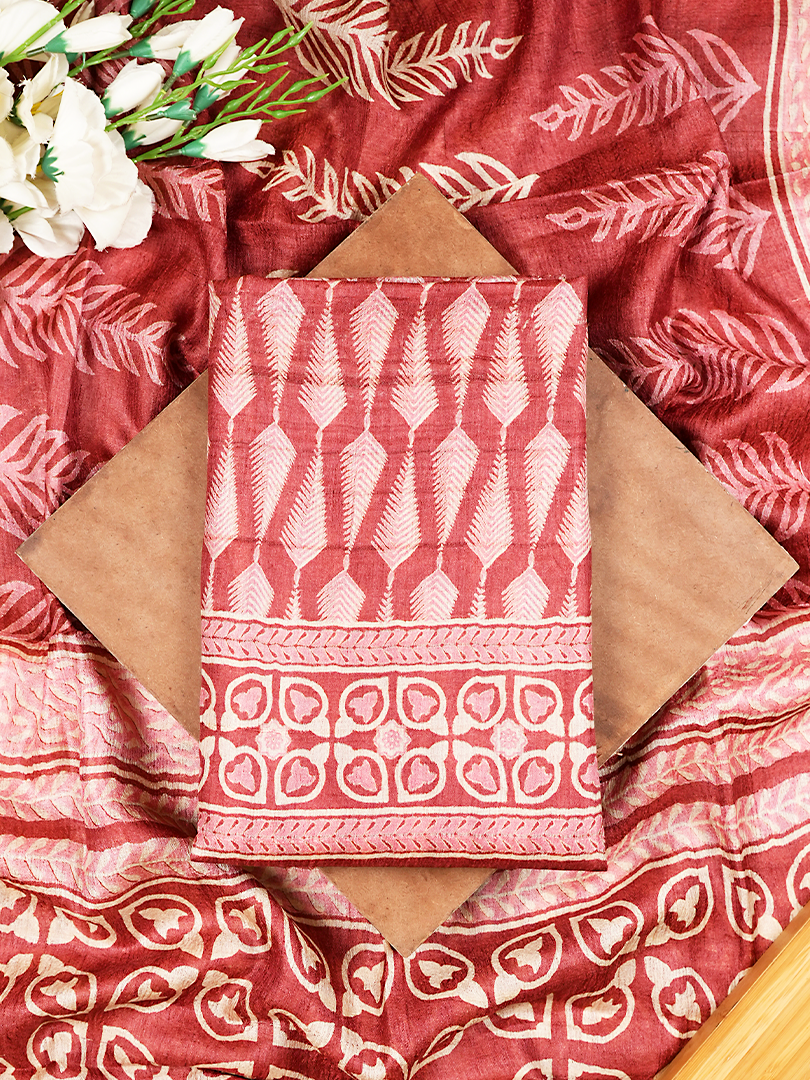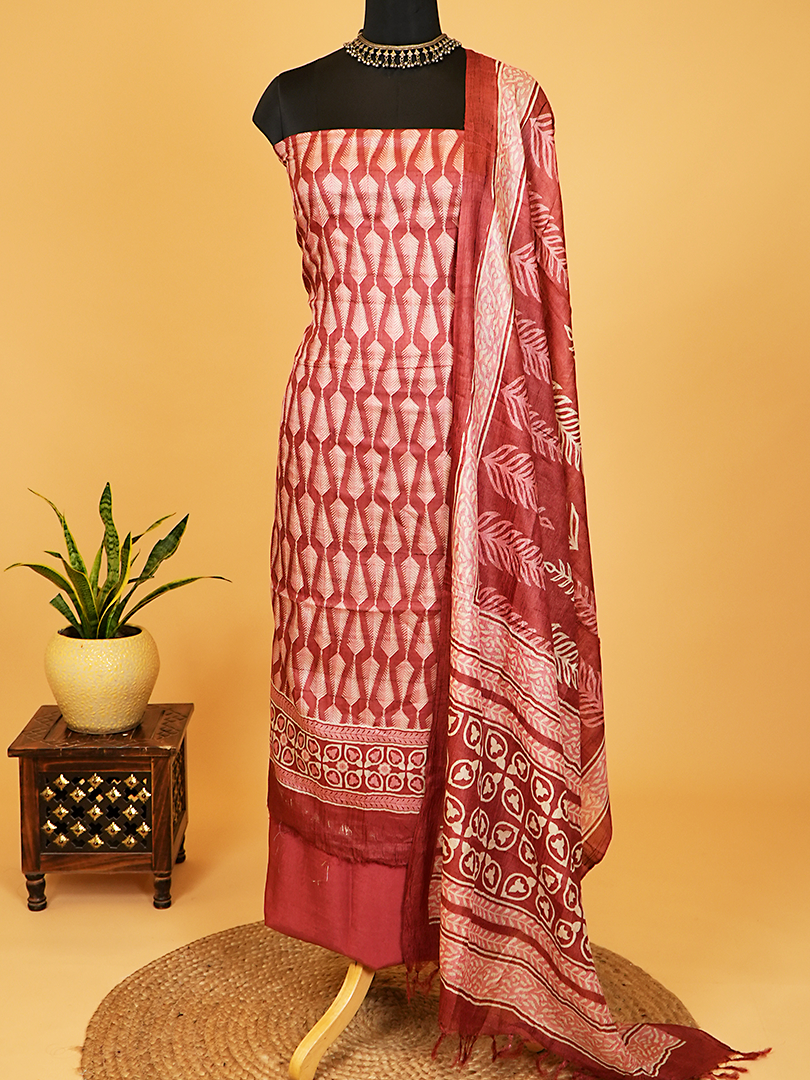Maroon Handblock Printed Tussar Silk Suit Set