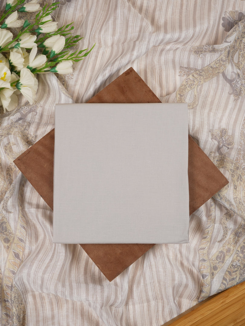 This elegant linen suit set features a soft polka dot print on the kurta, enhanced with delicate lace detailing along the neckline and hem for a refined finish. The subtle paisley motifs at the bottom add a traditional touch, while the set is completed with a breathable pure cotton bottom for all-day comfort. A lightweight linen dupatta with intricate printed borders and scalloped lace edges brings the whole look together, making it perfect for summer gatherings, festive mornings, or everyday elegance.