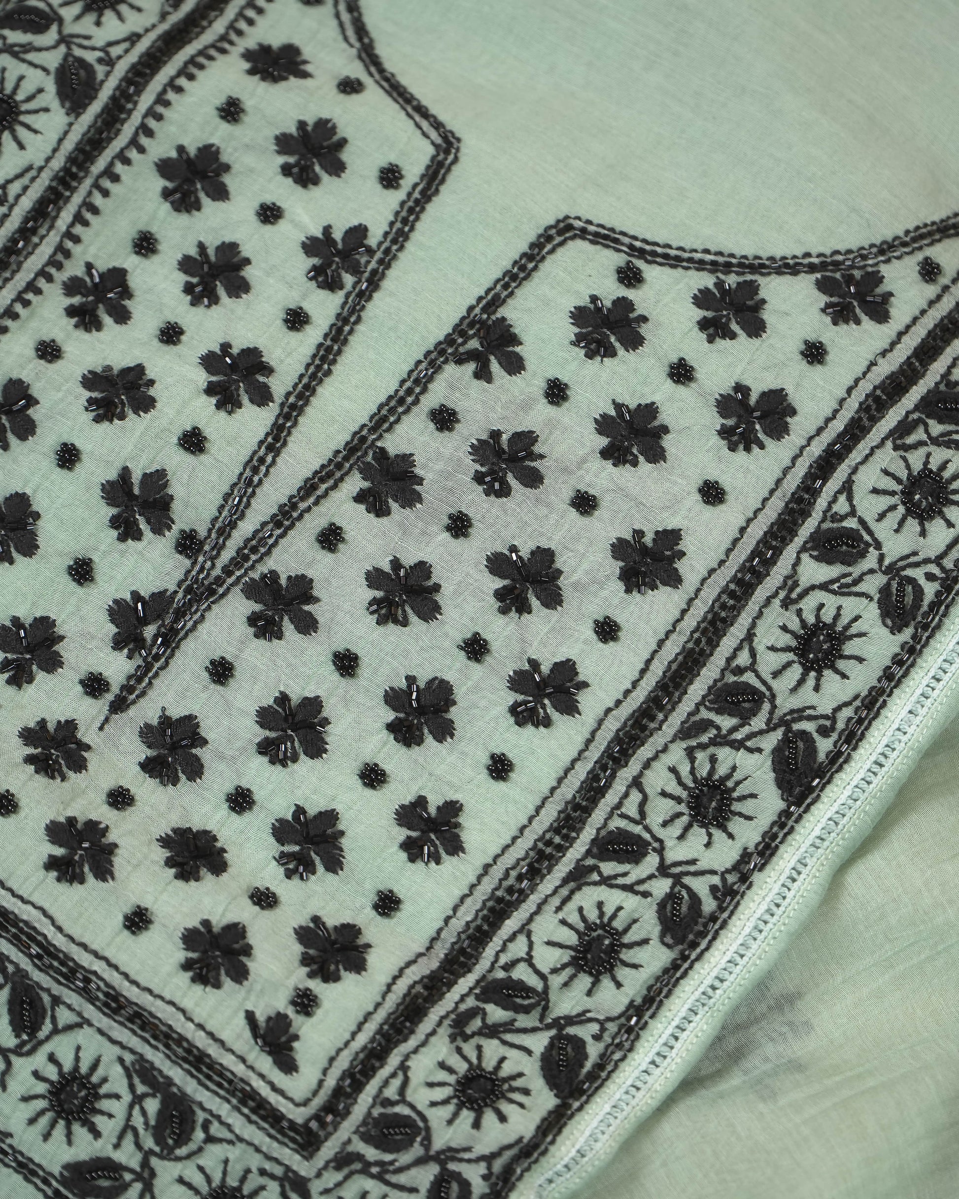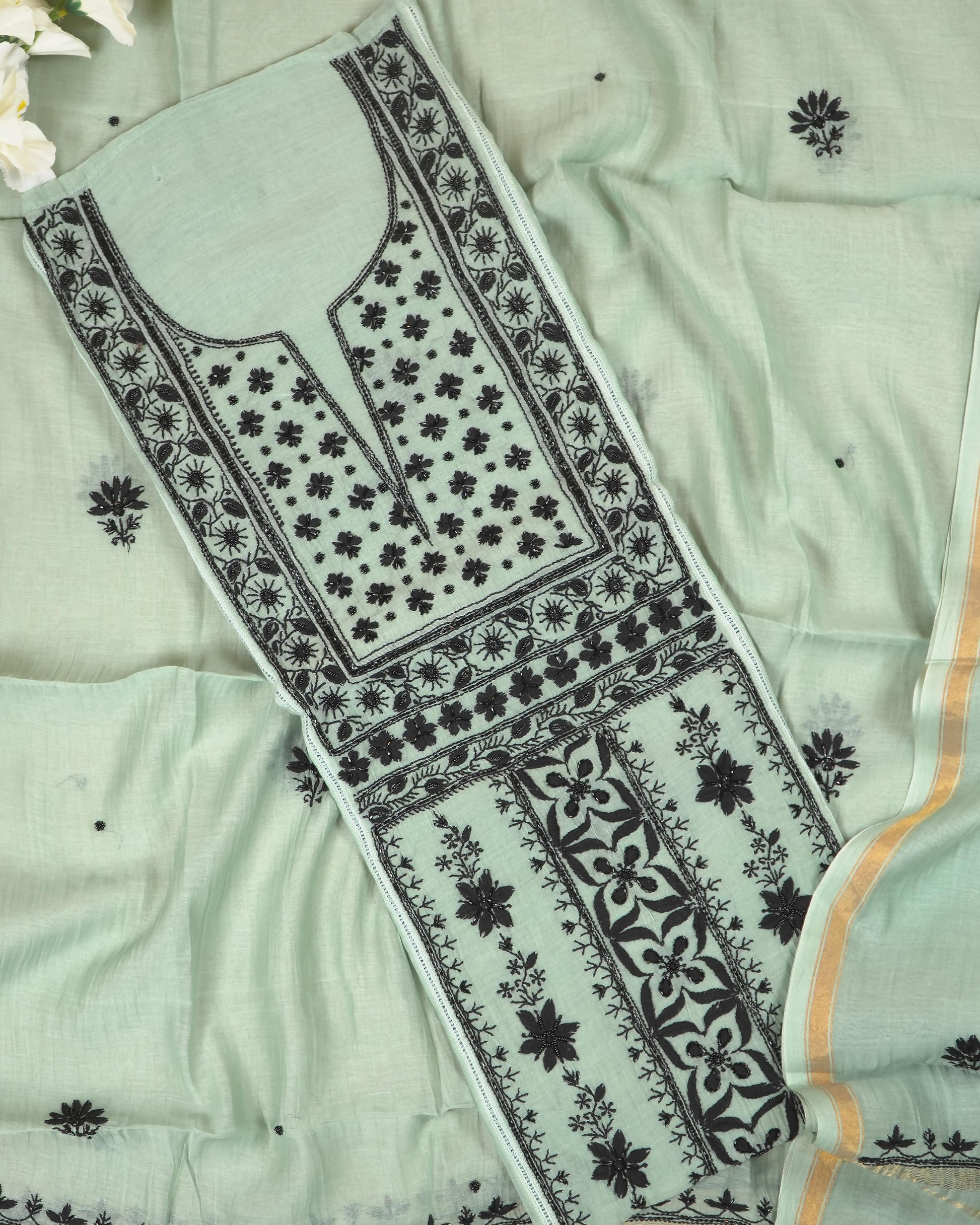 Light Sea Green Mul Chanderi Lucknowi Handwork Suit Set