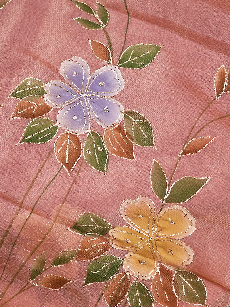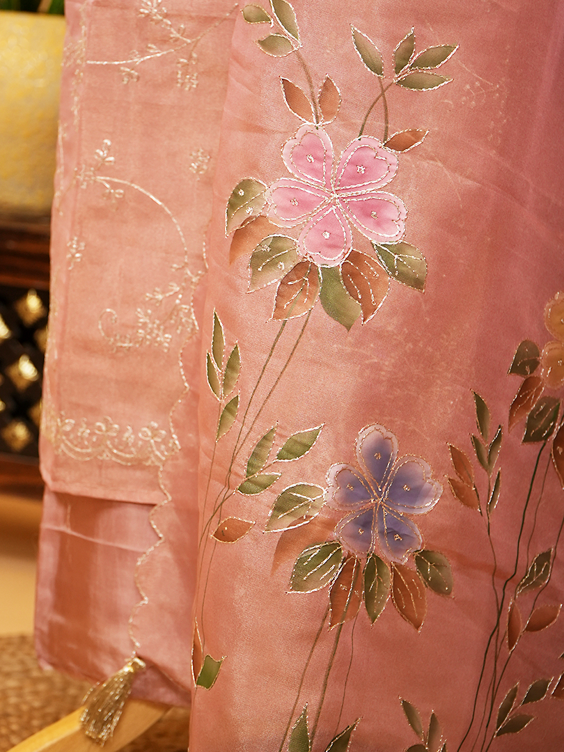 Pastel Pink Pure Glass Organza Suit with Pitta Work