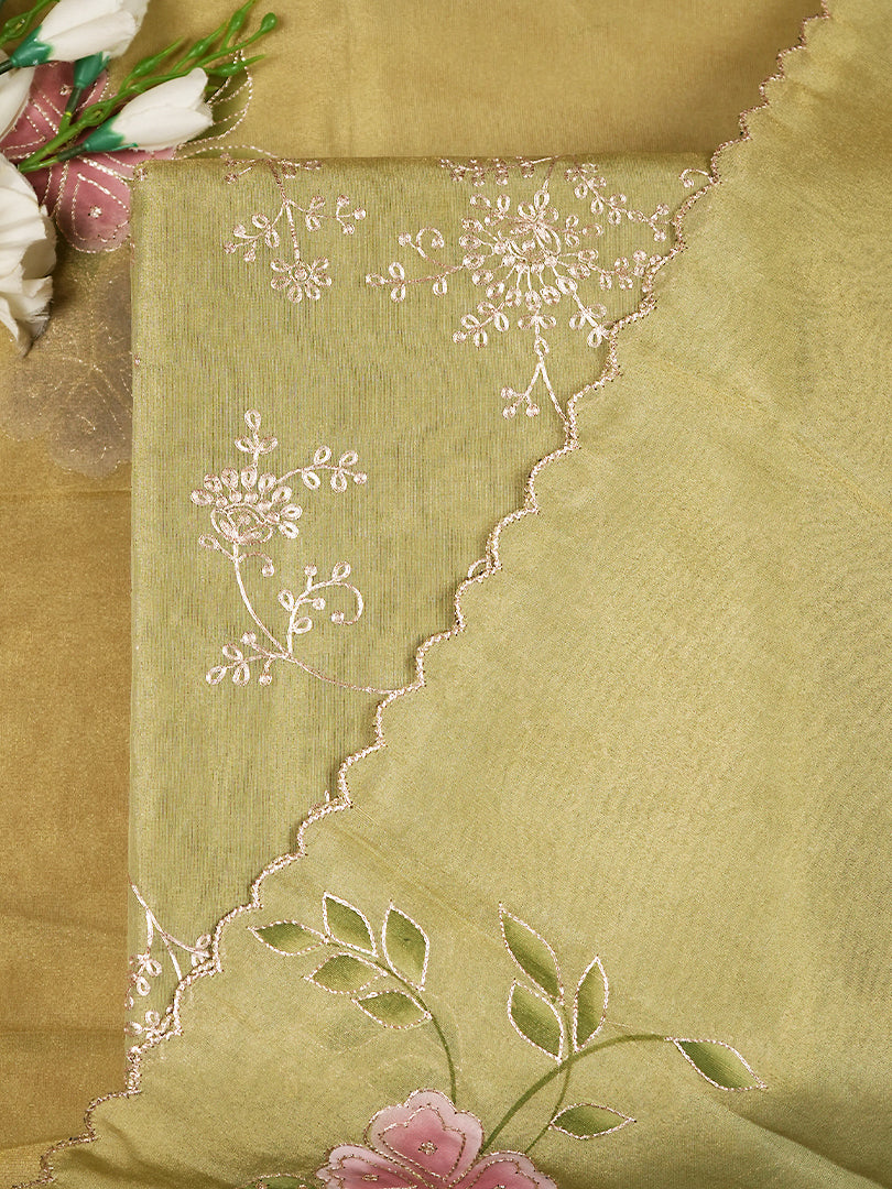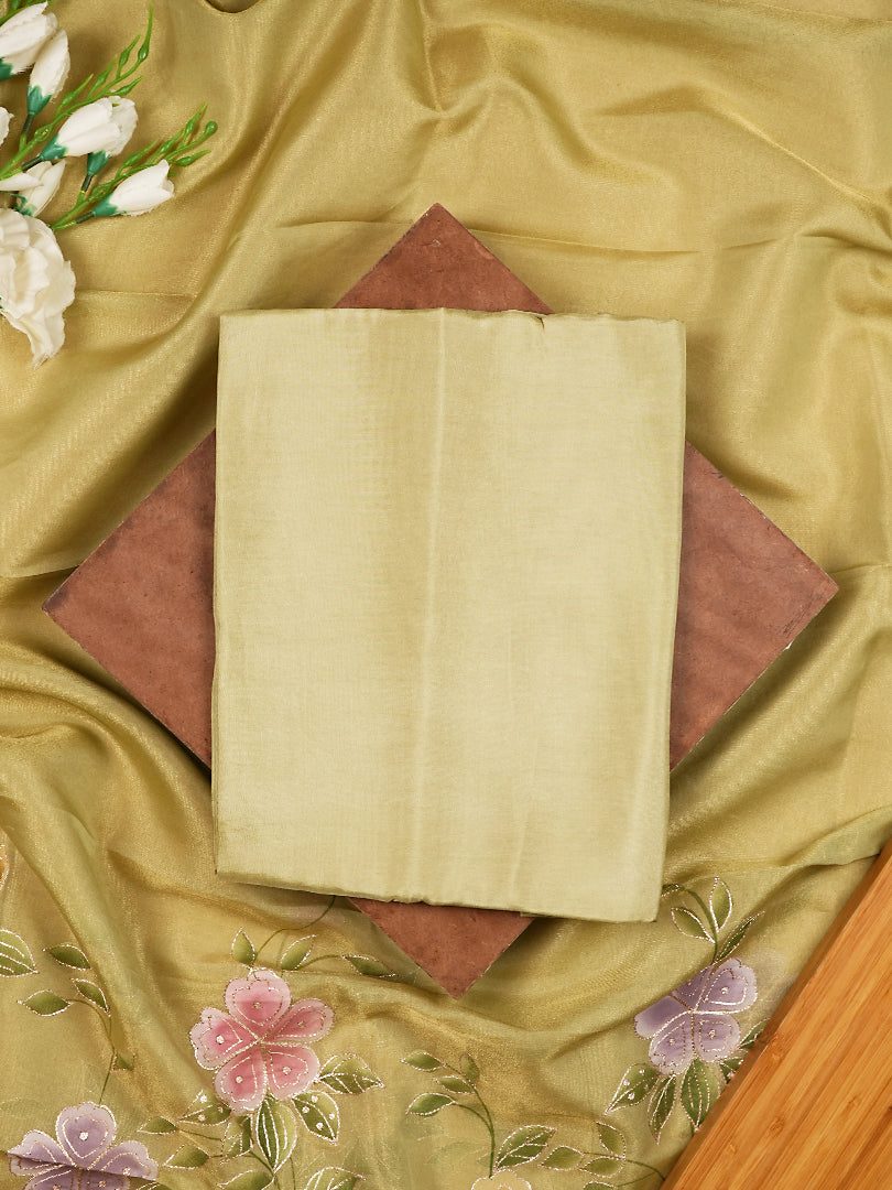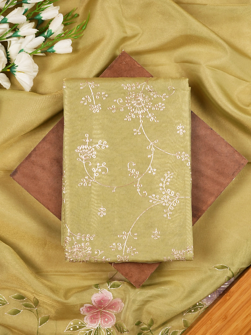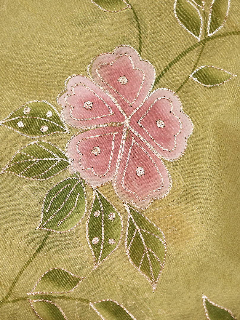 Pistachio Green Pure Glass Organza Suit with Pitta Work