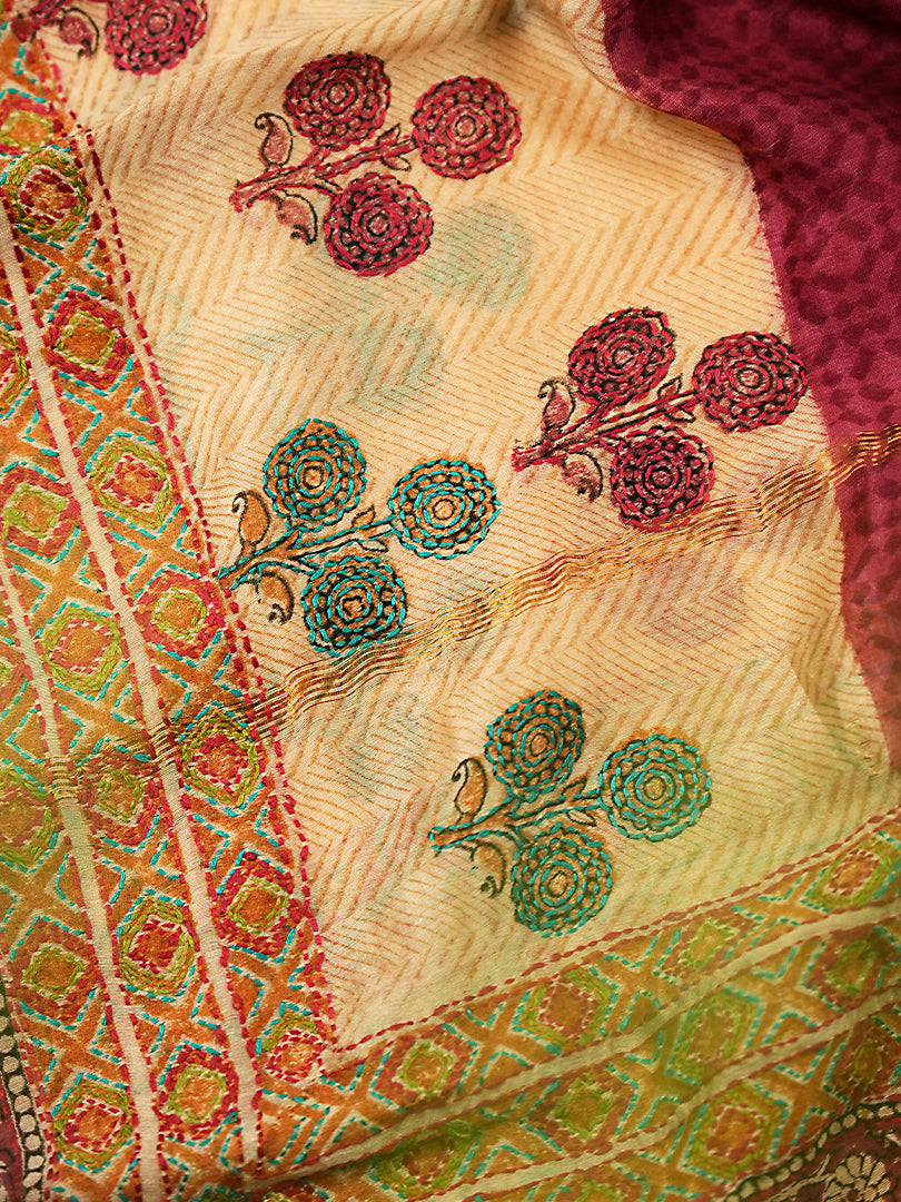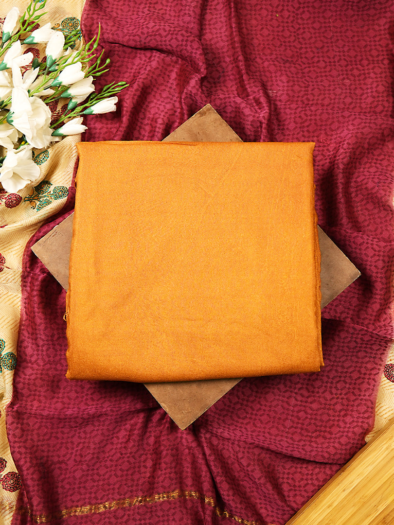 Mustard Maheshwari Silk Suit with Multicolour Floral Border