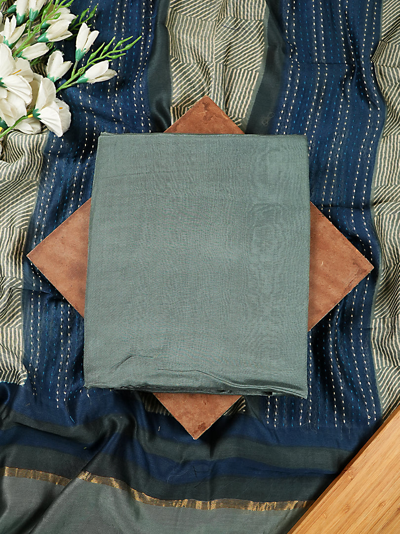 Navy Blue and Steel Grey Maheshwari Silk Suit Set