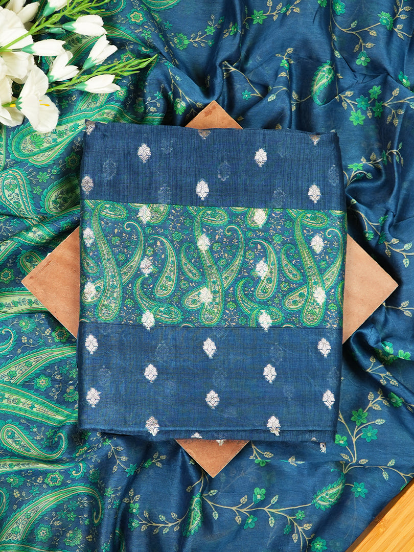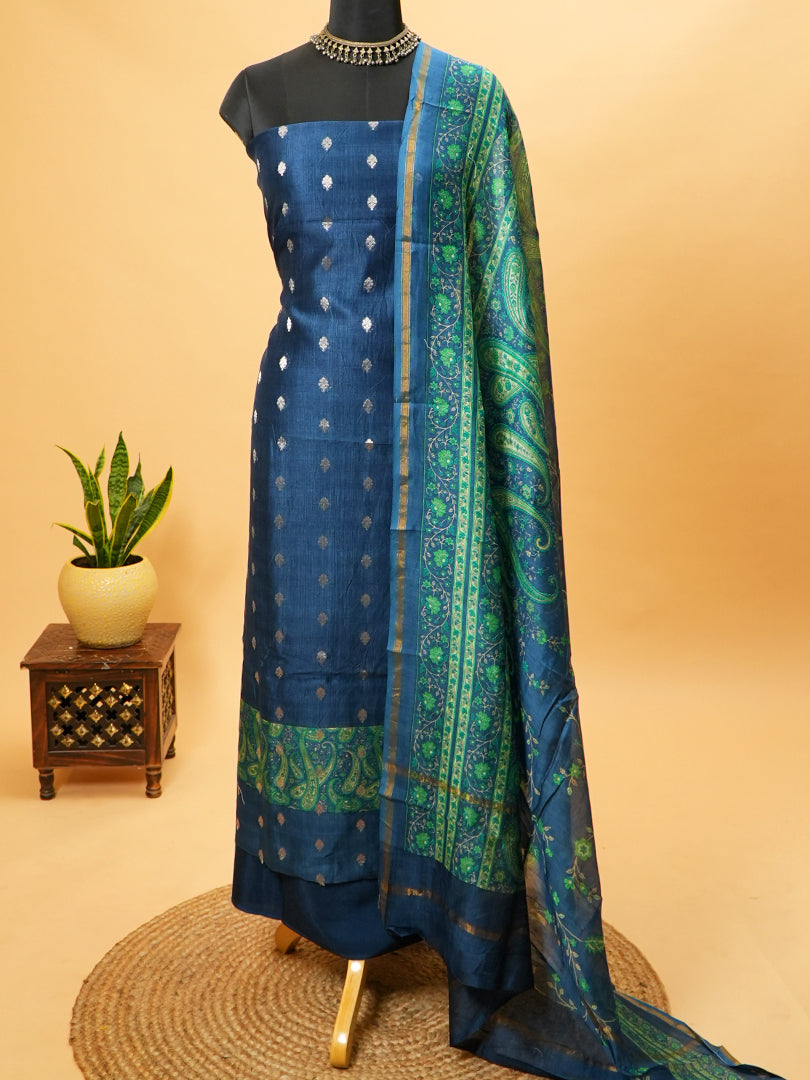 Navy Maheshwari Silk Suit with Zari Bootis