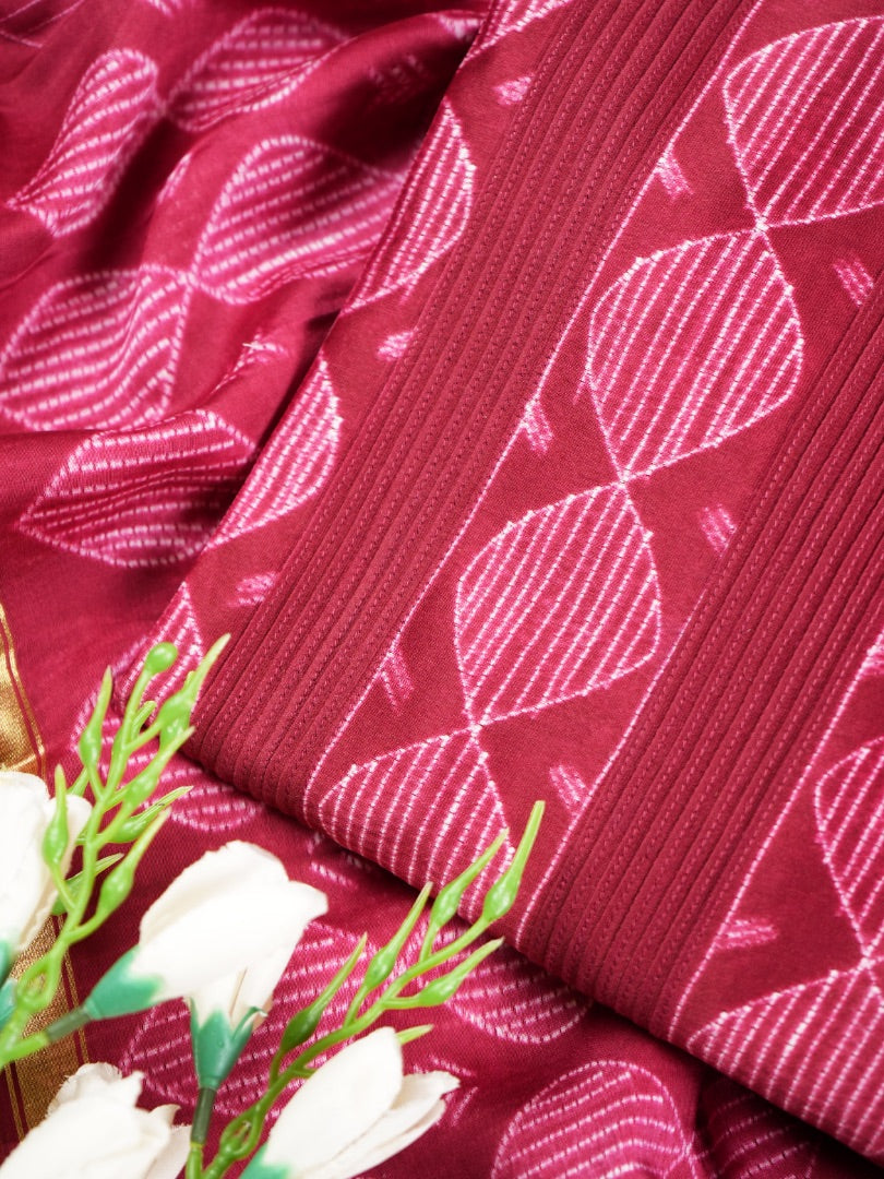 Magenta Maheshwari Silk Suit With Pintex & Shibori Design