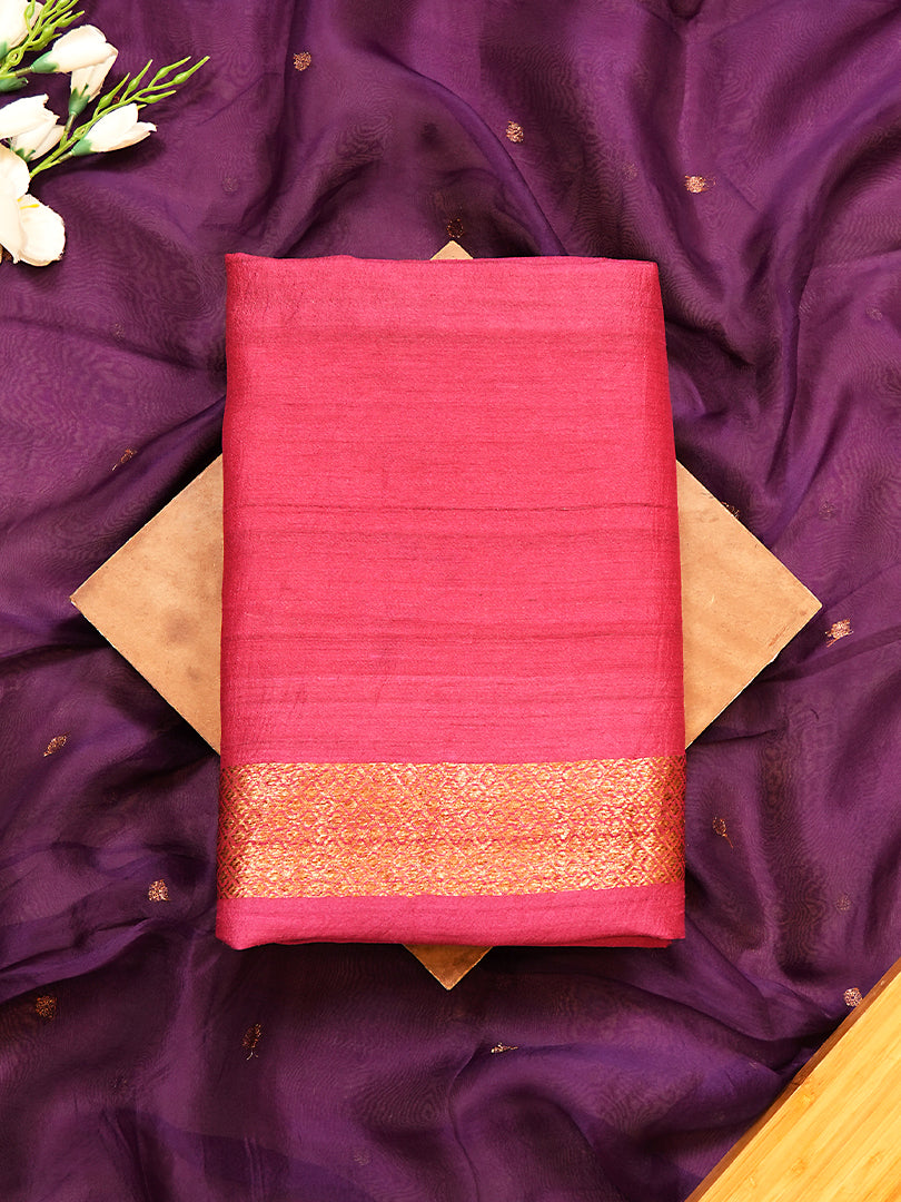 Magenta Pure Tussar Silk Suit with Banarasi Weaving
