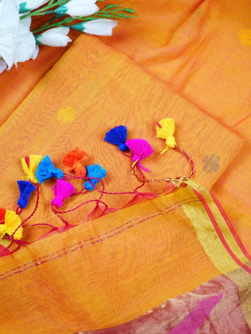 Marigold Orange Muslin Jamdani Suit with Paithani Dupatta