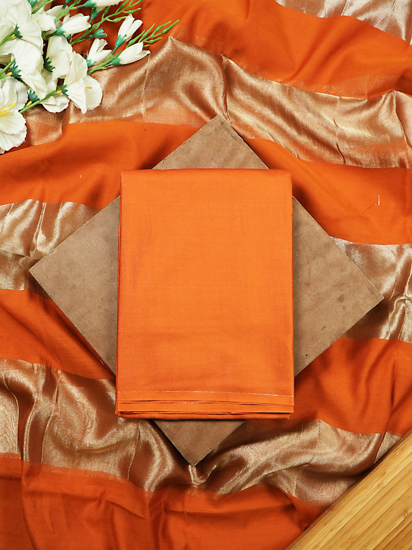 Orange Pure Mul Chanderi Suit with Polka-Style Banarasi Weaving