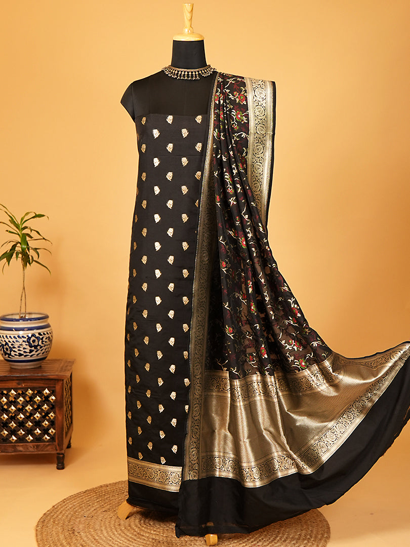 Black Katan Silk Suit with Banarasi Bootis