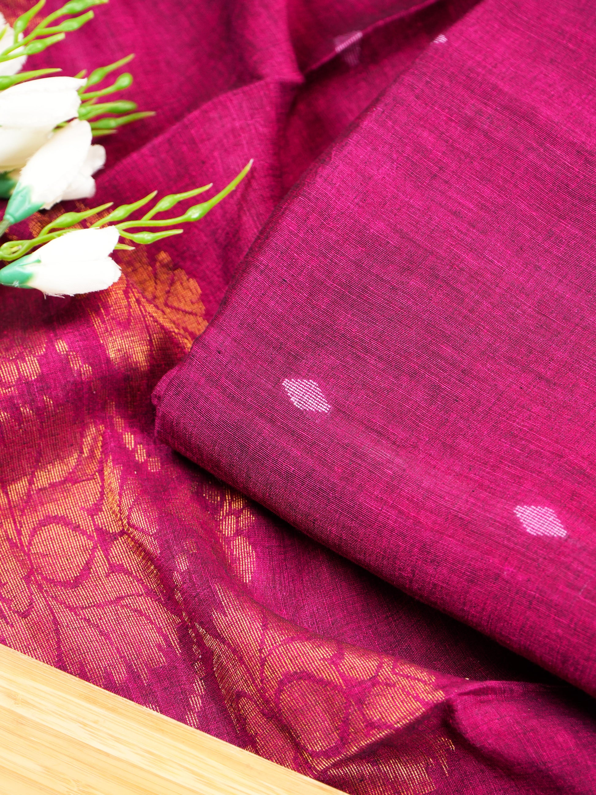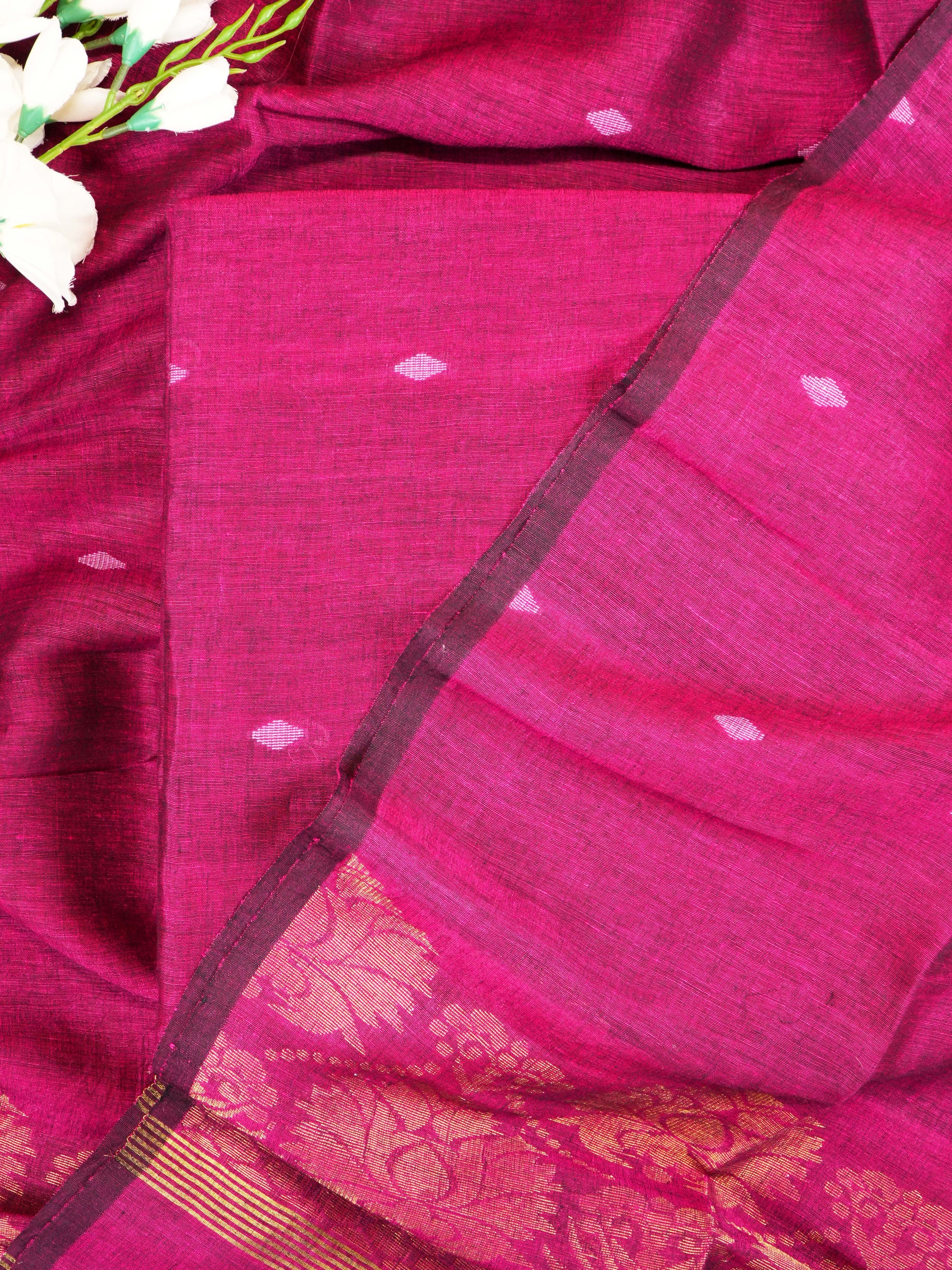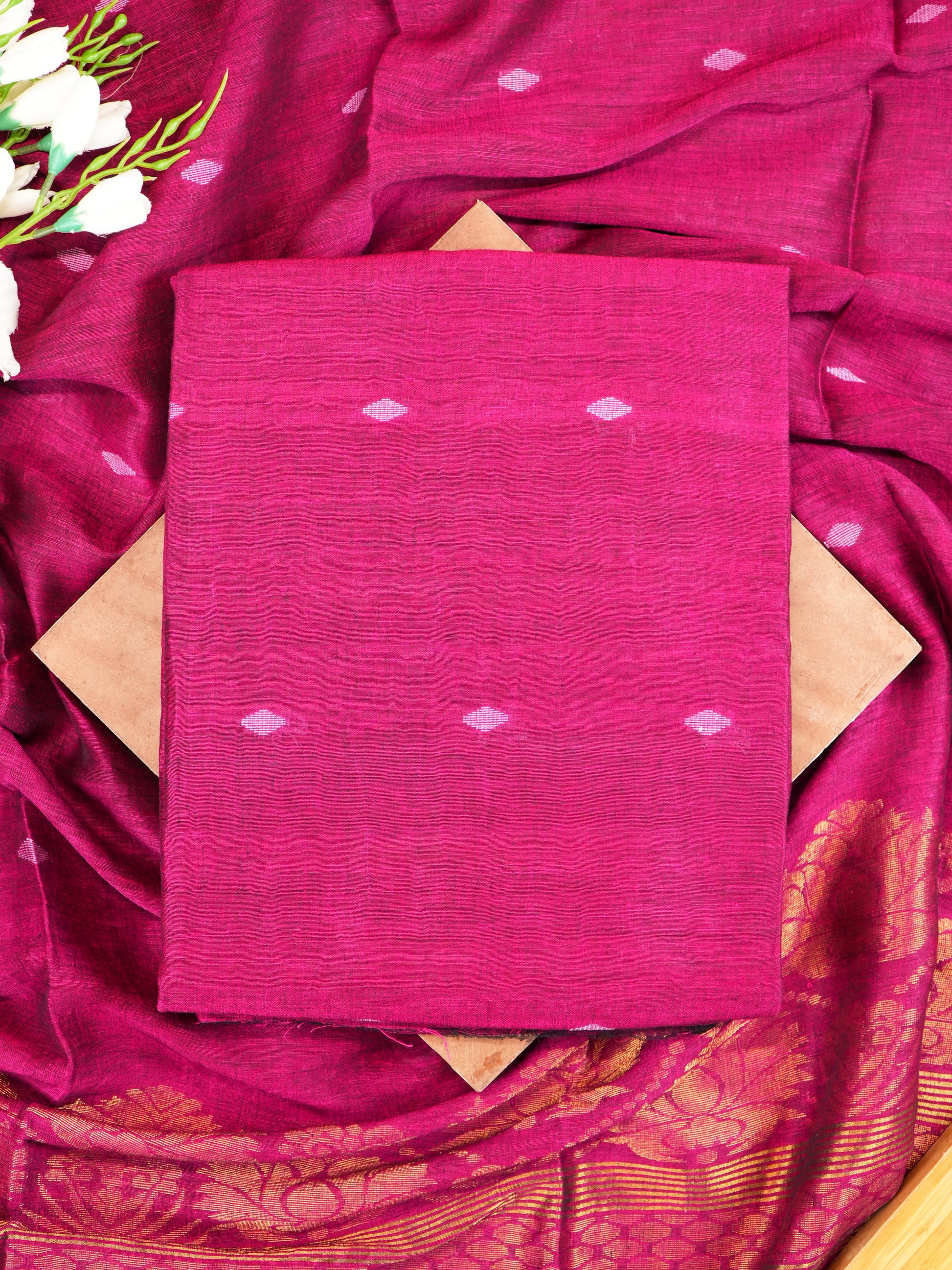 Jamdani Dark Magenta Khadi Linen Banarasi Handwoven Suit Set