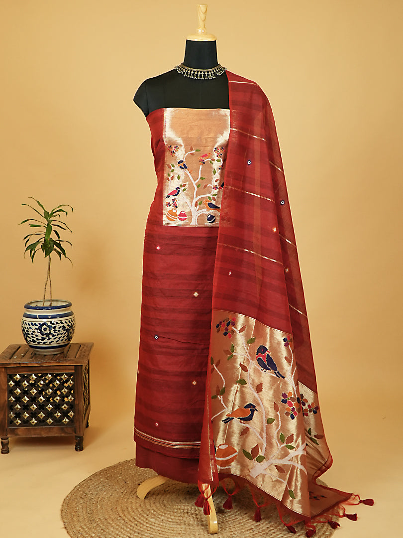 Maroon Chanderi Silk Suit Set with Paithani Weaving