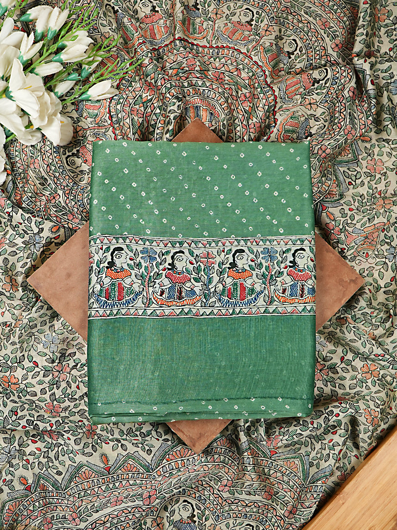 Mint Green Maheshwari Silk Suit Set with Bandhani Print
