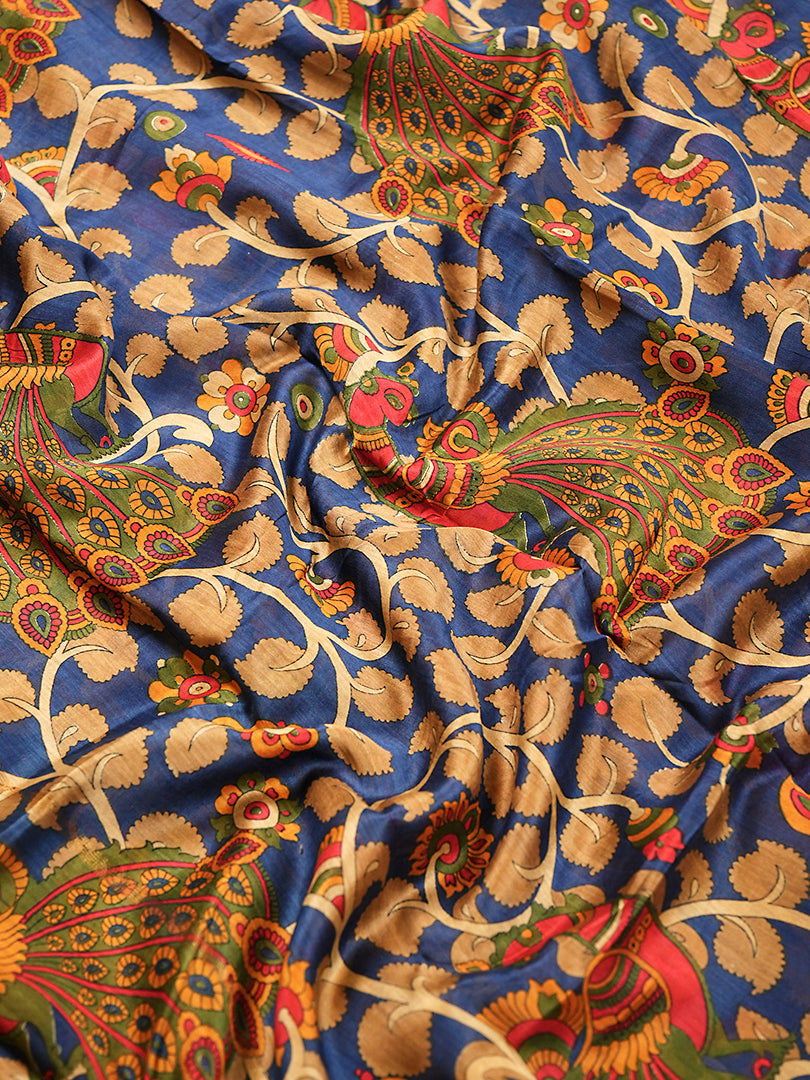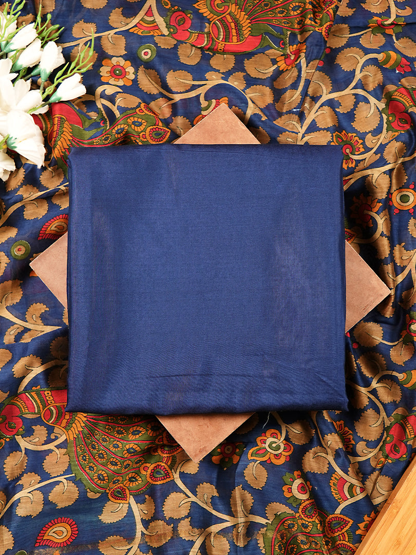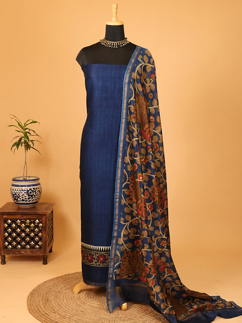 Navy Blue Maheshwari Silk Suit with Artistic Dupatta