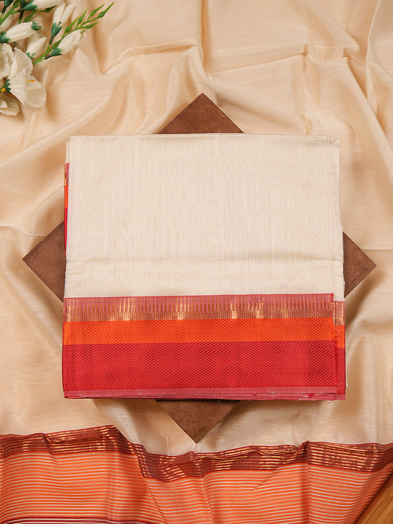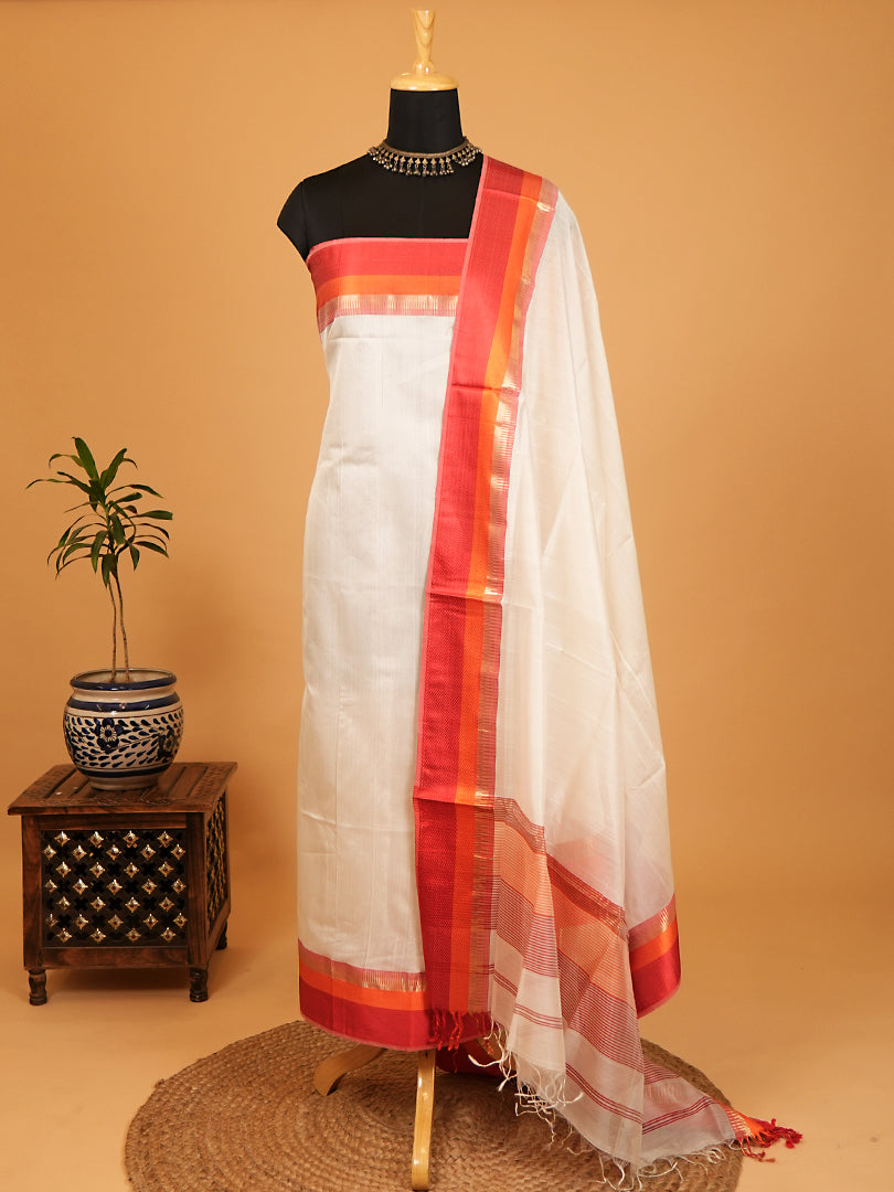 White Maheshwari Silk Multi-Coloured Border Suit Set